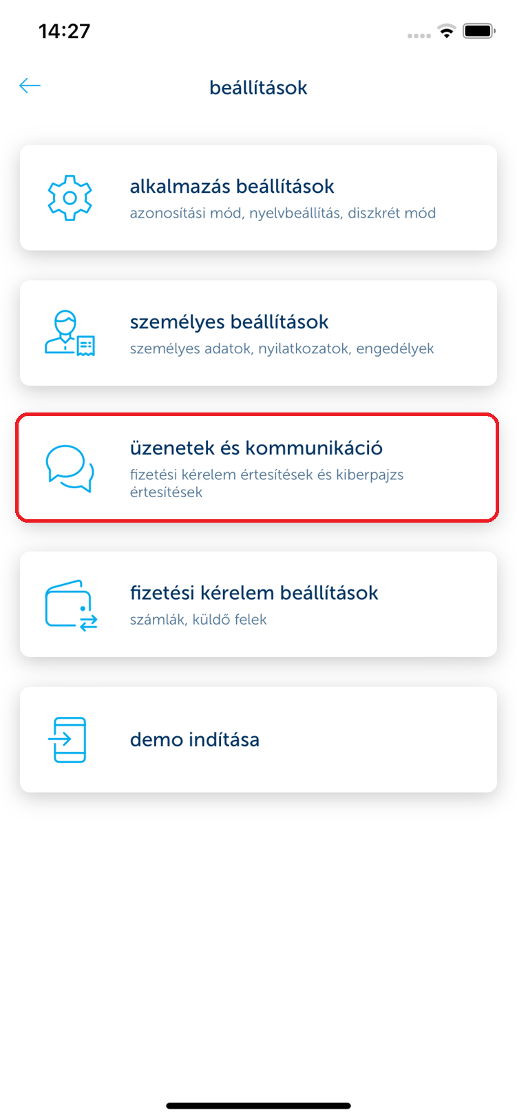 - mobilbankban: a Beállítások/Üzenetek és kommunikáció menüpontban KiberPajzs műveletmegfigyelési értesítések résznél a Tiltás gombra kattintva. A K&H mobilbank új verziója amelyben ez a funkció is elérhető lesz fokozatosan válik letölthetővé.