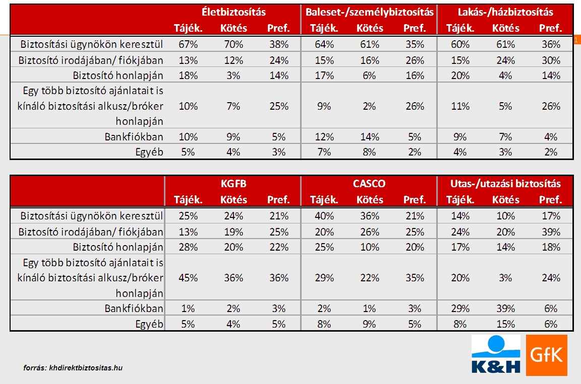A biztosításkötést inkább a „hagyományos” úton intézik: biztosítási ügynökhöz vagy biztosítói fiókhoz fordulnak. A fiókok szerepe különösen az utasbiztosítás terén jelentős. A kgfb kötések és casco biztosítások esetében számottevő az online alkuszok oldalainak részesedése, de már megjelennek a biztosítói honlapok is.