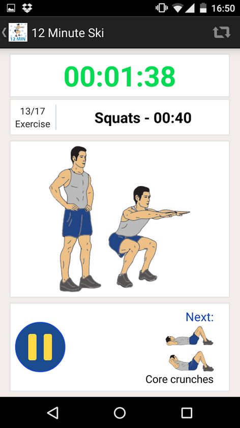 Mielőtt belevágunk a síelésbe, mindenképpen célszerű formába hozni az izmainkat. Egyrészt egy kis edzéssorozattal még az utazás előtt, másrészt bemelegítéssel a pályán, a lecsúszást megelőzően. Ehhez kínál segítséget a 12 Min Pre Ski Workout Trainer elnevezésű alkalmazás, amely Android rendszerű telefonokra érhető el. A 12 percesre tervezett tréning 3 részből áll és a bemelegítés után elsősorban olyan izmokat mozgat meg, amelyek a síeléshez szükségesek, továbbá erősíti a hasizmot és a hát alsó részét, amelyek az egyensúly megtartásában segítenek.