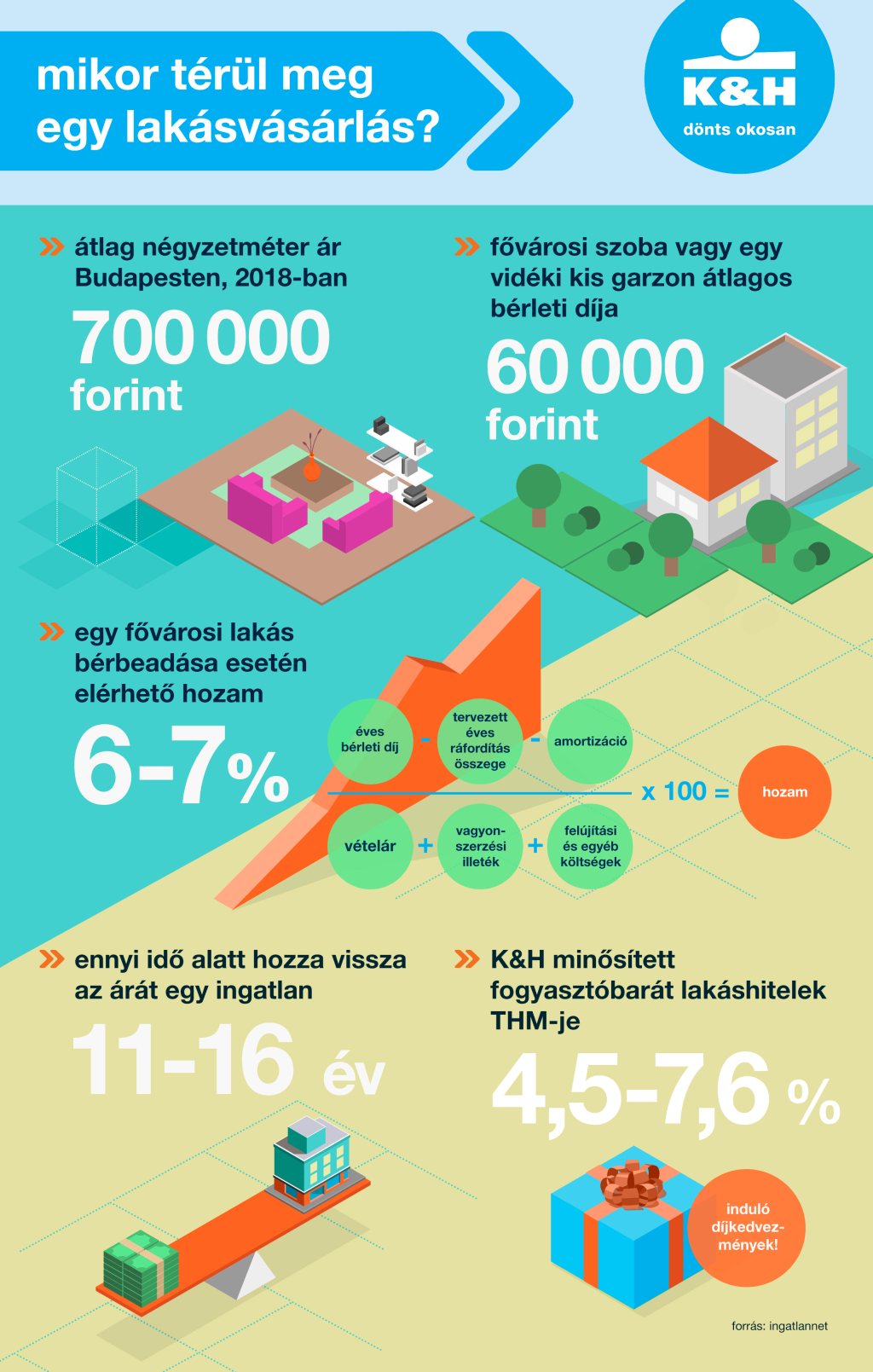 11 - 16 év - Ez pedig a válasz arra a kérdésre, hogy vajon hány év alatt hozza vissza a teljes vételárát egy ingatlan. Vagyis, hogy az éves hozamok forint értéke, hány év alatt adja ki a teljes bekerülési költséget. Tehát körülbelül egy-másfél évtized múlva fog megtérülni egy lakásvásárlás, ha 20-25%-os önrészt tesz le a vevő és a magyar bruttó átlagbérre veszi fel a kölcsönt.
