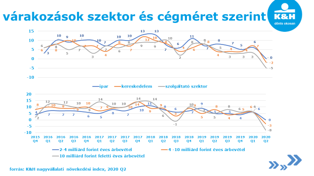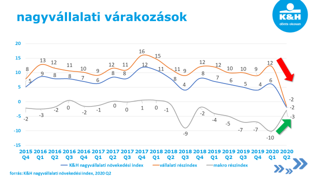 „Szemben az elmúlt évek stabil trendjével, a 2 milliárd forint feletti éves árbevétellel rendelkező nem-állami nagyvállalatok aktuális helyzetét, várakozásait vizsgáló K&H nagyvállalati növekedési index korábban még sosem mért negatív értéket vett fel és az előző negyedévhez képest 6 pontról -2 pontra zuhant. A koronavírus-járvány következtében a cégek csökkenő árbevétel- és profitvárakozásokkal számolnak, emellett kevesebb beruházást terveznek. Sokat javult viszont a gazdasági környezetre vonatkozó várakozás, ugyanis a makrogazdasági részindex -10 pontról -3 pontra nőtt az elmúlt időszakhoz képest. A bizakodás annak is köszönhető, hogy jelenleg számos kormányzati döntés segíti a cégeket. Gondoljunk az egyes adófajták csökkentésére, valamint a kedvezményes hitelprogramokra, amelyek közül az egyik legnépszerűbb az NHP Hajrá” – foglalta össze az eredményeket Patrick Van Overloop, a K&H Üzleti ügyfelek divízió vezetője.