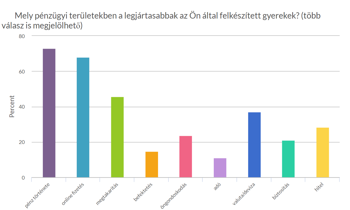 Megoszlanak arról a vélemények, hogy az online felkészítés plusz terheket rótt-e a pedagógusokra: 50 százalékuk szerint nem, másik 50 százalék szerint igen. Akik szerint igen, azok leginkább a folyamatos írásos kommunikációban és a technikai háttér megtanulásában látták a többletmunkát, valamint voltak, akik állandó hétvégi időpontban tudtak csak készülni az egyéb online órák miatt. Abban viszont a pénzügyi vetélkedőre felkészítő pedagógusok 73 százaléka egyetértett, hogy ahhoz, hogy diákjait támogatni tudja a felkészülésben, neki magának is fejlesztenie kellett tudását.