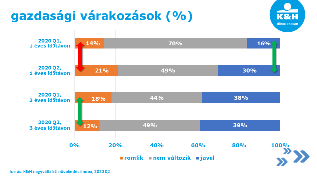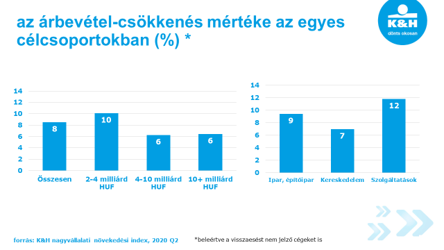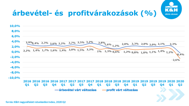 „A K&H nagyvállalati növekedési index legutóbbi adatai alapján a magyarországi, 2 milliárd forint feletti éves árbevételű, nem-állami nagyvállalatok árbevétel- és profitnövekedését eltüntette a koronavírus-járvány. Jelenleg a vállalatok 0,4 százalékos árbevétel-csökkenéssel számolnak a következő egy évre. A nyereségvárakozásokat tekintve is jelentősen romlott a cégvezetők véleménye, ugyanis átlagosan 2,6 százalékos profitcsökkenést várnak” – foglalta össze az eredményeket Patrick Van Overloop, a K&H üzleti ügyfelek divízió vezetője.