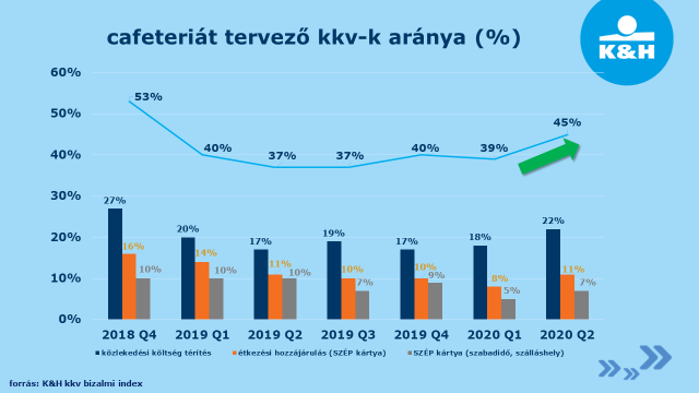 Továbbra is népszerűek a cafeteria juttatások, ugyanis az előző negyedévhez képest 6 százalékponttal nagyobb arányban, a cégek majdnem fele (45 százalék) tervez valamely formájával. A jelenleginél magasabb érték (53 százalék) utoljára a 2019-es cafeteria szabályozás előtt, 2018. negyedik negyedévében fordult elő. A cafeteria elemeket tekintve a munkába járás költségtérítése annak ellenére a legnépszerűbb, hogy 2019-től már jövedelemként adózik: közel minden negyedik cég (22 százalék) alkalmazná ezt a formát a következő egy évben. Az étkezési hozzájárulás SZÉP Kártyán, valamint a SZÉP Kártya szabadidő cafeteria elemek népszerűsége kis mértékben emelkedett az előző negyedévhez képest: az étkezési hozzájárulás 8 százalékról 11 százalékra, a szabadidő és szálláshely alszámla pedig 5 százalékról 7 százalékra. „A SZÉP Kártya népszerűsége tovább nőhet, nagyrészt a kormányzati intézkedések következményeként. Ennek keretében többek között megszüntették a SZÉP Kártya juttatások után fizetendő szociális hozzájárulási adót az év végéig, valamint a versenyszférában 450 ezerről 800 ezer forintra emelték meg a kedvezményes adózással nyújtható SZÉP Kártya juttatás keretösszegét. Arra számítunk, hogy a kedvezmények miatt az év hátralévő részében dinamikusabban növekszik majd a SZÉP Kártyákra feltöltött összeg, melynek kedveltségét a belföldi felhasználási lehetőség tovább növelheti” – tette hozzá Kökény Roland.