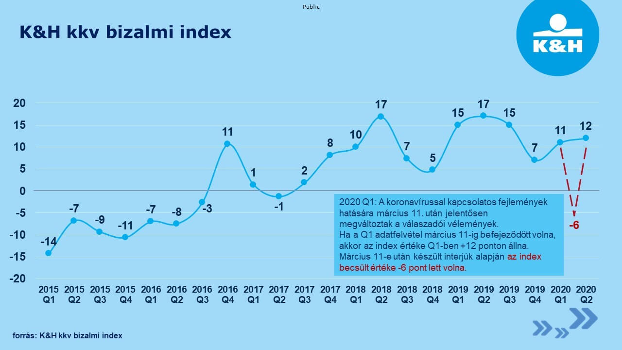 2020 márciusában és áprilisában a hazai mikro-, kis- és középvállalkozások jövőképét a vírusjárvány határozta meg, azonban a fertőzési veszély enyhülésével pozitívabbnak látszanak a várakozásaik is. „A kkv-k egy évre előremutató várakozásait jelző K&H kkv bizalmi index jelenleg 12 ponton áll, ami gyakorlatilag megegyezik a koronavírus előtti időszakban mért értékkel. Bár a járvány kezdetén készített időközi felmérés alapján a kkv-k várakozásait súlyosan megrázta a veszélyhelyzet, a mostani eredmények azt mutatják, hogy viszonylag hamar visszanyerték hitüket, és összességében bizakodóan tekintenek az előttük álló évre. A járvány okozta negatív gazdasági helyzetben szignifikánsan romlottak ugyan a beruházásokra, valamint a munkavállalók fizetéseire vonatkozó várakozások, azonban egyúttal a közterhek, illetve a vállalati hitelek kamatainak mérséklésére is számítanak a cégek az elkövetkezendő évben. Jelenleg a cégeknek számos lehetősége adódik – például kedvezményes hitelek és hitelgaranciák, egyes adófajták elengedése formájában – arra, hogy mérsékeljék költségeiket, és láthatóan ezzel élnek is” – mondta el Kökény Roland, a K&H kkv szegmens marketing vezetője.
