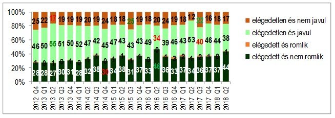 Az elmúlt egy évben látható egy lassan javuló, optimizmusba hajló tendencia, még ha a jelenlegi pénzügyi helyzetével a többség elégedetlen is, a jövőben sokan várnak javulást.