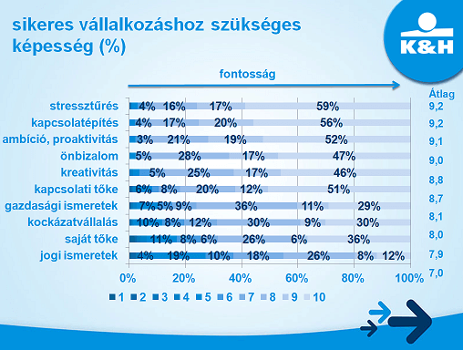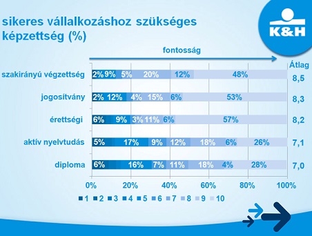 „A K&H: üzletet ide! vállalkozásösztönző program keretében arra kerestük a választ, hogy a cégvezető részéről milyen képzettségek és képességek szükségesek ahhoz, hogy egy vállalkozás hosszú távon sikeres legyen. A kutatásból kiderült, hogy a kkv-k szerint egy vállalkozás eredményességéhez ugyan az egyetemi tanulmányok és a nyelvtudás is nélkülözhetetlen, de leginkább a szakma rejtelmeibe kell minél jobban elmélyedni” – mondta el Kovács Viktor Zoltán, a K&H kkv marketing főosztály vezetője.