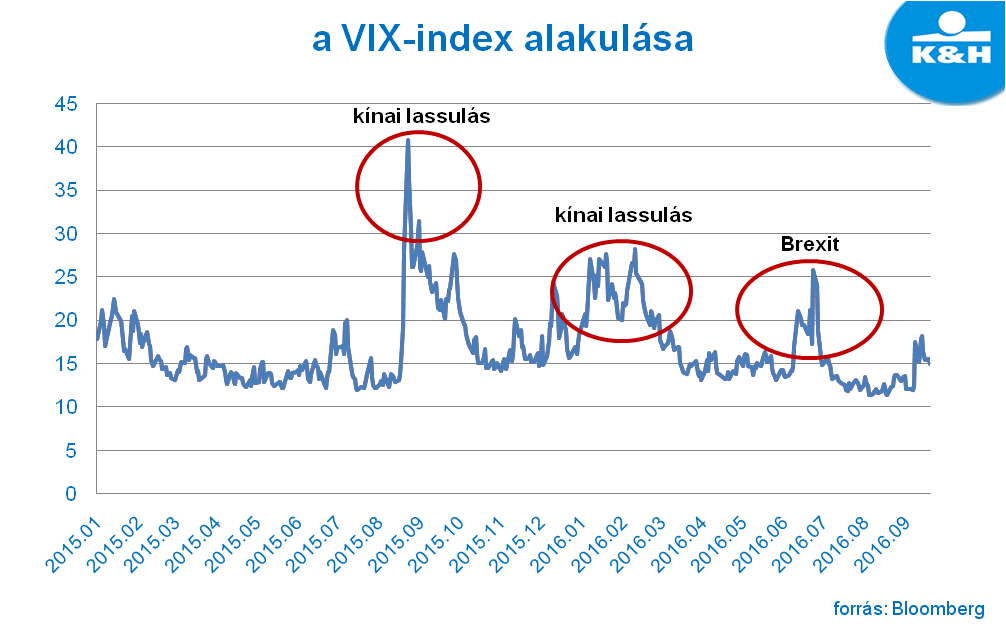 Habár a két legesélyesebb elnökjelölt gazdaságpolitikai elképzelései között nem is lehetne nagyobb ellentét, ha megnézzük az index mozgását, jól látható, hogy a renminbi tavalyi leértékelése, majd a kínai gazdaság lassulásáról szóló év eleji hírek sokkal nagyobb félelmet keltettek a befektetők körében, mint a közelgő amerikai elnökválasztás. Sőt, jelenleg kifejezetten nyugodtnak mondahatóak a befektetők, miközben a fejlett részvénypiacok a korábbi csúcsok közelében vannak.