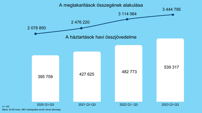 Az idei harmadik negyedévben 3,4 millió forintra nőtt a megkérdezettek háztartásainak átlagos megtakarítása a K&H kutatása szerint, ami az előző év azonos időszakának átlagához viszonyítva közel 11 százalékos emelkedést jelent. Ez mérsékeltebb növekedés, mint a korábbi években látott 19 és 24 százalék, ami részben az idei bizonytalanabb gazdasági környezettel és az inflációs nyomással magyarázható.