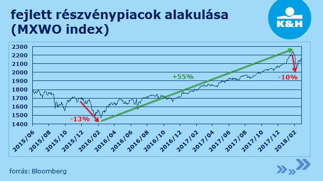 „Ha egyszerűen meg akarjuk fogalmazni, mi várható a folytatásban: hektikusság. A világgazdaság impozáns növekedése és az alacsony kamatkörnyezet alapvetően továbbra is kedvez a részvény eszközöknek. A gazdasági adatokra, és ennek nyomán a jegybanki szigorítással kapcsolatos várakozások változására azonban érzékenyebben reagálhatnak a piacok, így kisebb-nagyobb korrekciókra is számítani kell. Azt is látni kell persze, hogy nem a mostani folyamat rendkívüli, sokkal inkább az elmúlt két évben jellemző gyakorlatilag folyamatos, látványosabb korrekcióktól mentes időszak volt egy mesterséges, védett állapot a részvénypiacok számára” - elemezte a helyzetet Kovács Mátyás, a K&H Alapkezelő szenior portólió-menedzsere.
