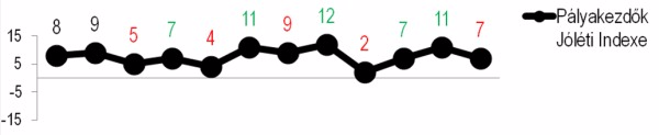 Egyre inkább nő azok aránya, akik elégedetlenek jelenlegi helyzetükkel és nem is remélik, hogy a közeljövőben jobbra fordulhat a sorsuk – derült ki a K&H pályakezdők jóléti index harmadik negyedéves adataiból. A megkérdezettek körében nőtt azok aránya, akik veszélyeztetve érzik meglévő állásukat, és csökkent azok aránya, akik stabilnak vélik azt. A válaszadók 41 százaléka vélte úgy, hogy váltás esetén nagyon nehezen találna munkát. Jellemzően eltér a diákok és a végzettek véleménye az álláskeresésről. Míg a diákok még optimistán tekintenek a jövőbe, azok a végzett fiatalok, akik legalább egyszer megpróbáltak elhelyezkedni, már sokkal pesszimistábbak a munkahelyi kilátásaikat illetően. Nőtt azok száma is, akik már legalább egy éve állást keresnek. Ennek ellenére a munkanélküli fiatalok bizakodóbbak, mint korábban.
