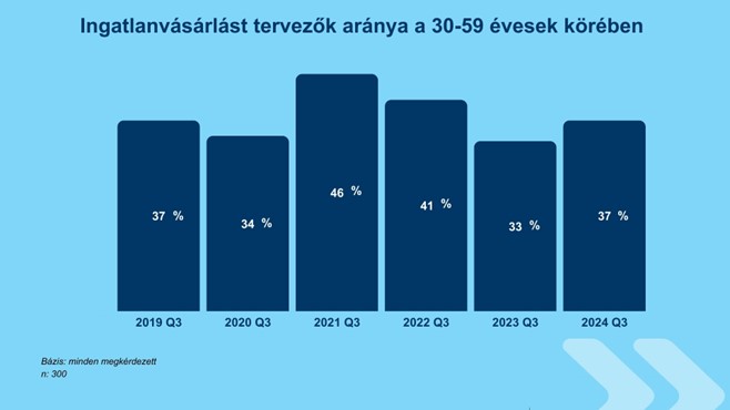 Kicsit növekedett a lakóingatlan vásárlását tervezők aránya a 30-59 éves korosztályban – erre jutott a K&H biztos jövő felmérés az idei harmadik negyedévben. A friss adatok szerint a válaszadók 37 százaléka lépne ki a lakáspiacra vásárlási szándékkal, ami meghaladja a múlt év azonos időszakában mért 33 százalékos értéket.
