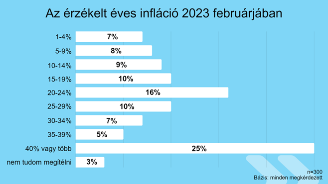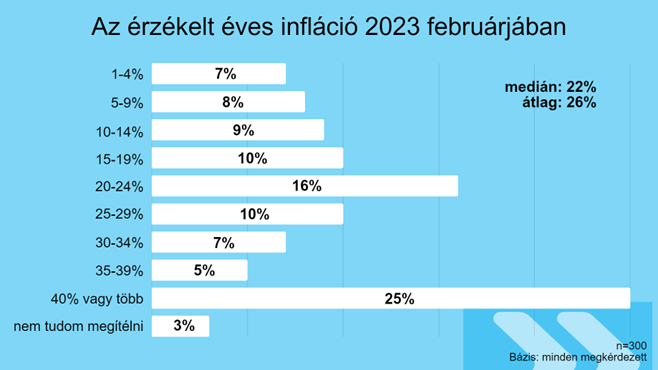 Úgy tűnik, a fiatalok inflációs véleménye van a legnagyobb „összhangban” a hivatalos statisztikai adattal: az ehhez a korosztályhoz tartozók szerint az éves infláció 2023 februárjában 26 százalék körül alakult. Ez gyakorlatilag megegyezik a hivatalos inflációs adattal, ami 25,4 százalék volt ebben a hónapban. Ugyanakkor a részletes kutatási adatok szerint széles sávban szóródtak az eredmények.