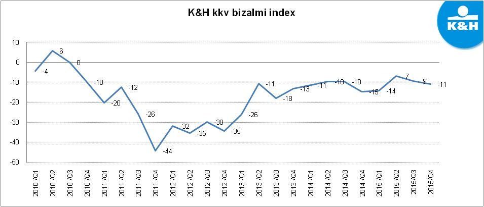 A hazai vállalkozások várakozásait mutató K&H kkv bizalmi index enyhe romlást mutat: két pontos csökkenéssel jelenleg -11 ponton áll. A kkv-k leginkább a beszállítók és a hitelkamatok esetében számítanak a jelenleginél rosszabb helyzetre a következő egy évben, míg a közterhek és a munkaerő változását pozitívan értékelik, köszönhetően a közterhek mérséklődésének és a foglalkoztatottak tervezett béremelésének.