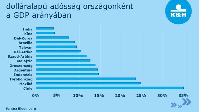 dolláralapú adósság országonként a GDP arányában 2018