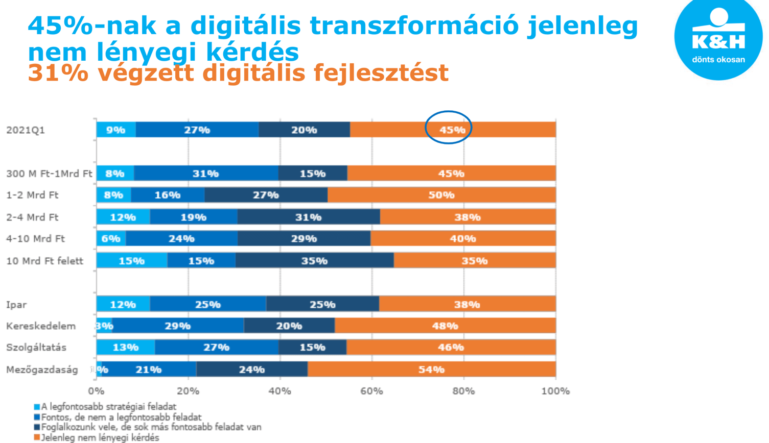 A K&H szakértői úgy látják, hogy minden vállalatnál érdemes a digitális fejlesztéseket előtérbe helyezni, mert ezekkel növelhető a hatékonyság és a jövedelmezőség.