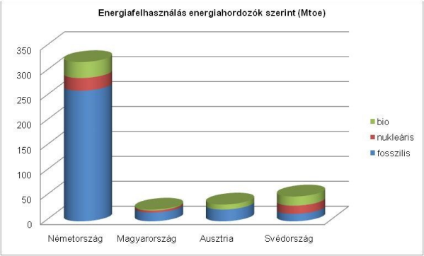 A szakember Magyarország, Németország, Ausztria és Svédország energiafelhasználási gyakorlatán keresztül mutatta be, mekkora eltérések vannak az egyes országok energiapolitikáját illetően, mind az energiafelhasználás mértéke, mind az összetétele szempontjából. Magyarország energiafelhasználása leginkább Németországéhoz hasonlít, mivel a fosszilis energiahordozókra épül a rendszer, míg a nukleáris, illetve bioenergia felhasználás jóval kisebb mértékű. A svédek és osztrákok esetében viszont a bioenergia már most jelentős részarányt képvisel, így Svédország esetében csupán 30%-ot tesz ki a fosszilis energiahordozók felhasználása. Magyarország tehát jóval kevesebb bioenergiát hasznosít, mint a lényegesen kisebb mezőgazdasági területtel rendelkező Svédország, holott kifejezetten jó adottságokkal rendelkezik agrár szempontból bioenergia termelésre. A geotermikus energia felhasználása ugyan hazánkban a legmagasabb, azonban a bioenergia – főként fűtési célú – felhasználása hatalmas potenciált rejt az ország számára. Pécs kiváló példája annak, hogy a biomassza felhasználása akár egy teljes város energiafelhasználásának ellátására alkalmas. Igaz, több évbe telt a város energiaellátását biztosító szalmabálák nagyüzemi szállításának megszervezése, azonban még így is a régióban megtermelt szalma csupán 3%-át hasznosítják.