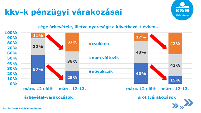 - Március 12-től a kkv-k döntéshozóinak véleménye drasztikus változáson ment keresztül, tehát ez a fordulónapja a gazdasági kilátásokkal kapcsolatos várakozások átalakulásának.