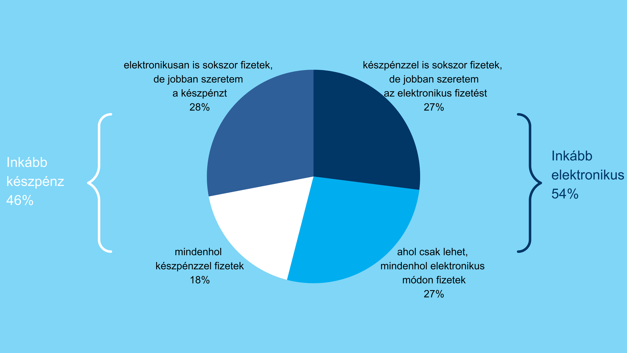 Bár a készpénz a huszonévesek körében is tartja magát, és az elektronikus fizetést preferálók aránya csak nagyon lassan nő, azok a fiatalok, akik egyébként szoktak így fizetni, egyre több vásárlásuknál választanak valamilyen elektronikus fizetési módot. Két éve még csak a fiatalok 38 százaléka válaszolta, hogy majdnem minden nap elektronikusan fizet, idén már 54 százalék nyilatkozott így.