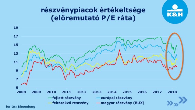 A magyar tőzsde idén egyelőre a BUX teljesítménye és a részvények értékeltsége szempontjából is lemaradóban van régiós társaihoz, illetve a feltörekvő piacokhoz képest. A hazai cégek eredményvárakozásai javultak, így a javuló befektetői hangulat fennmaradása a magyar részvénypiacra is pozitív hatással lehet, csökkenhet a hazai részvénypiac lemaradása a feltörekvőkhöz képest. A kereskedelmi háború Európát – és ezzel a hazai cégeket is erőteljesen – érintő hatásai ugyan még nem teljesen láthatók, értékeltség alapon ugyanakkor mindenképpen jó választás lehet a hazai tőzsde.
