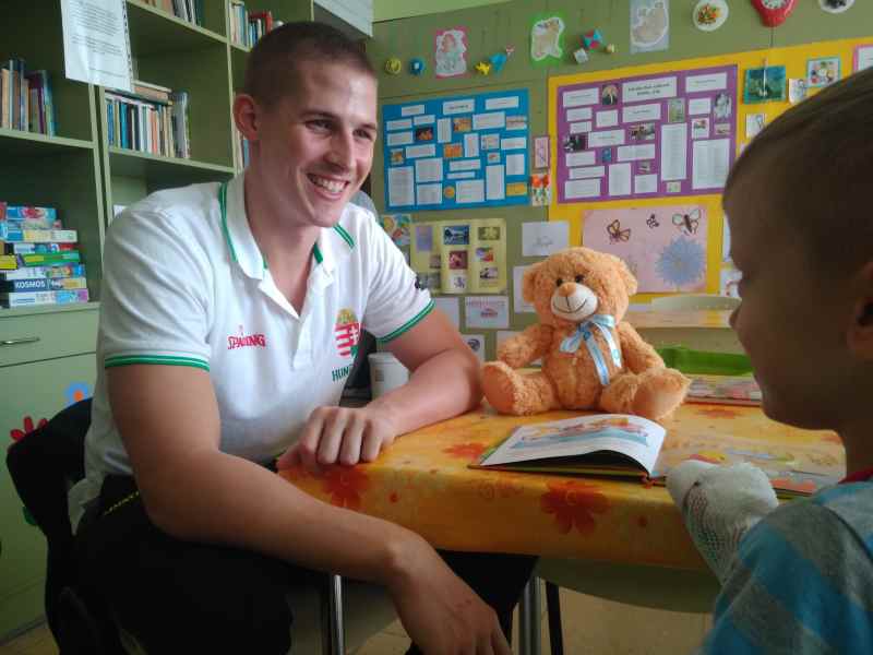 „Boldogan adom tovább, amit szüleimtől kaptam, hiszen gyerekként engem is lenyűgözött a mesék világa. Nekem kisfiúként a Micimackó volt a kedvenc mesém – gyakran hallgattuk testvéremmel együtt, ahogy esténként mesélték nekünk elalvás előtt” – mondta el Váradi Benedek, a magyar férfi kosárlabda válogatott védőjátékosa, aki arcán széles mosollyal érkezett a kórházba mesét olvasni. A játékos sűrű elfoglaltságai ellenére is talált rá alkalmat, hogy találkozzon a kis betegekkel. „Bár a mindennapi edzés, a válogatottal és a klubbal való szereplés mellett nagyon zsúfoltan telnek a napjaim, a fontos dolgokra szerencsére mindig tudok időt szakítani. Remélem, sokan csatlakoznak majd ehhez a kezdeményezéshez, hogy örömteli percekkel ajándékozzák meg a gyerekeket.”