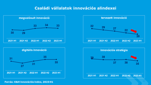 Mérséklődött a családi vállalatok fejlesztési kedve: a cégek eddig megvalósult és a jövőben tervezett innovációs tevékenységét és aktivitását félévente vizsgáló K&H innovációs indexük 2 pontos csökkenést követően jelenleg 27 ponton áll. A változás annak tudható, hogy kevesebb fejlesztést terveznek, valamint az innovációs stratégia egyelőre még nem az erősségük.