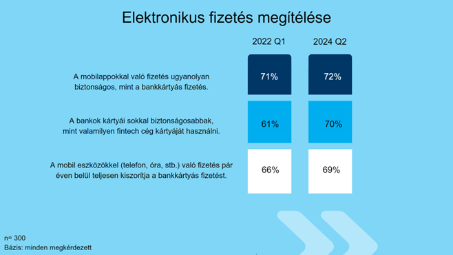 A K&H ifjúsági index felmérés szerint az idei második negyedévben a 19-29 éves korosztály tagjainak 72 százaléka szerint az okostelefonos vagy okosórás digitalizált kártyával való fizetés ugyanolyan biztonságos, mint a sima - fizikai - bankkártyás megoldás. Ez nagyjából megfelel a 2022-es kutatás eredményének. Ugyanakkor nagyon sokan - a válaszadók 70 százaléka - azon a véleményen vannak, hogy a bankok által kibocsátott kártyákat biztonságosabb használni, mint a fintech cégek kártyáit.