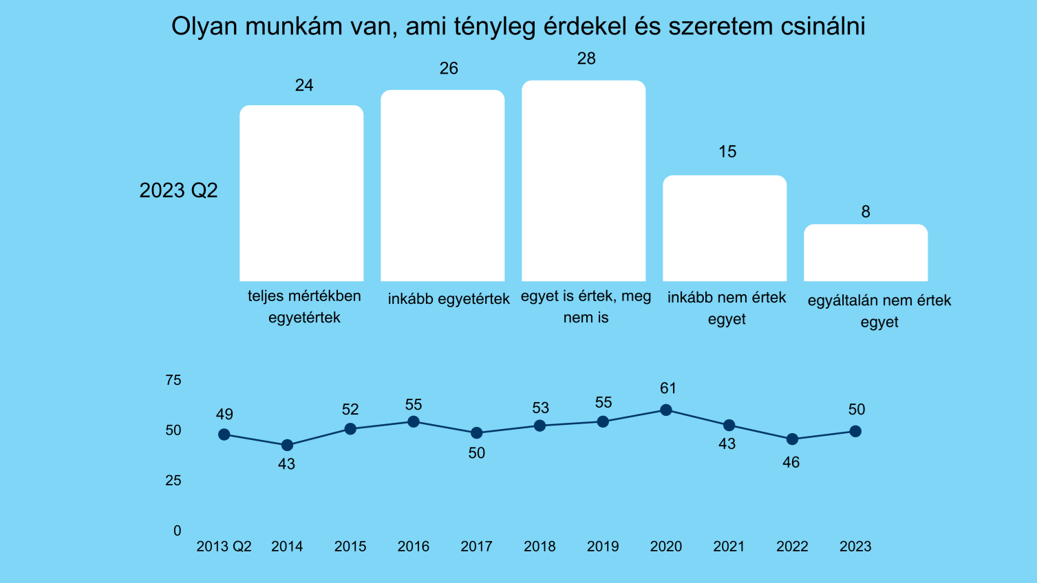 A dolgozó fiatalok 50 százaléka úgy érzi, olyan munkát végez, ami érdekli, és emellett szereti is a munkáját. 28 százalékos a bizonytalanok aránya, akik nem tudnak egyértelműen állást foglalni ebben a kérdésben. Csak 8 százalék mondta azt, hogy nem is érdekli a munkája és nem is szereti - egyebek mellett erre jutott a K&H ifjúsági index, amely a 19-29 évesek munkavállalással és tanulással kapcsolatos terveire kérdezett rá, továbbá arra is kérte a felmérés résztvevőit, hogy mondják el véleményüket a magyar oktatás színvonaláról. A kutatás 2023 második negyedévének hangulatát tükrözi.