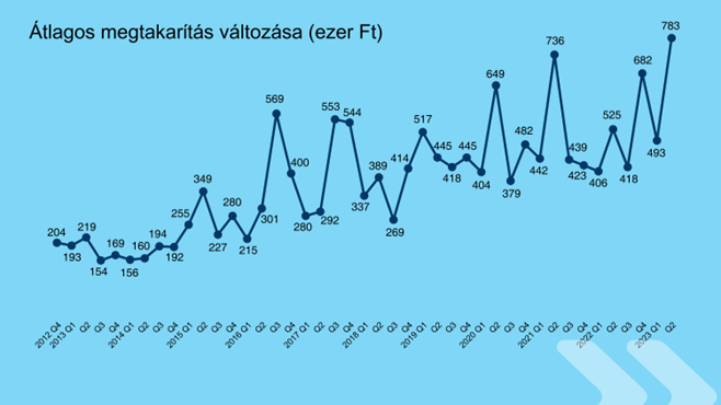 Felemás képet mutatnak a fiatalok megtakarításai. Egyik oldalról kedvezőtlen, hogy a 19-29 évesek között sokan vannak, akiknek nincs semmilyen megtakarítása, az idei második negyedévben 44 százalékukra volt ez igaz. Pozitív ugyanakkor, hogy megtakarítással rendelkező fiataloknak átlagosan 783 ezer forint tartaléka volt, ami rekordot jelent a felmérés történetében. Egy évvel korábban 525 ezer forintról számoltak be, 2018 második negyedévében pedig 389 ezer forintról. A jelentős növekedésben szerepet kaphatott, hogy a fiatalok egy része a nyárra gyűjtött, a dolgozó huszonéveseknek pedig növekedett a fizetése is.