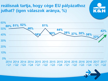 A hazai vállalkozások egy évre előremutató várakozásait jelző K&H kkv bizalmi index eredménye szerint kifejezetten pozitívak a cégek az uniós forrásokkal kapcsolatban. „Jelentősen megnőtt az érdeklődés a cégek részéről a pályázatok iránt. Ezt mutatja, hogy az elmúlt negyedévhez képest közel dupla annyi kkv találkozott mostanában olyan kiírással, amely érdekelheti a céget (28%), és növekedett az egy vállalkozásra eső benyújtott pályázatok aránya is. A kkv-k átlagosan 1,7 pályázatot nyújtottak be cégenként az elmúlt egy évben, szemben a korábban jellemző 1,4 értékhez képest”– részletezte az eredményeket Kovács Viktor Zoltán, a K&H kkv marketing főosztály vezetője.
