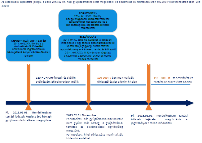 A 2014-es jogszabály módosítás alkalmával, az Állam tisztességtelennek minősítette a Bankok egyoldalú kamatemelését (2014. évi XXXVIII. törvény) és az ún. árfolyamrés alkalmazását. A Bankoknak 2015. február hónapban el kellett számolniuk (2014. évi XL. törvény) az adósokkal a tisztességtelenül felszámított költségek vonatkozásában, továbbá kötelezővé vált az Ügyfelekkel történő elszámolás. Az elszámolás sorrendiségének meghatározásánál, a jogi szabályok szerint, legelőször a gyűjtőszámlából eredő tartozás került csökkentésre. Ennek következményeként egyes ügyleteknél megszűnt a gyűjtőszámlából eredő tartozás, míg más hiteleknél - az elszámolás ellenére - maradt az adósoknak gyűjtőszámla-hitelkeret egyenlege.