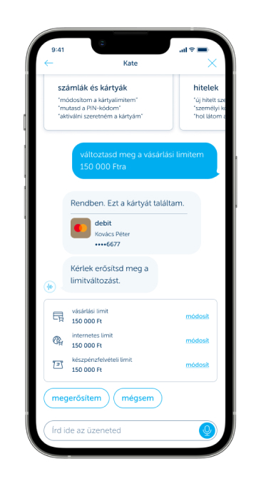- utalás, limit beállítás, PIN-kód mutatás vagy akár kivonatod áttekintése – gyorsan, egyszerűbben: nem kell menükben keresgélned, sem szakkifejezéseket használnod, saját szavaiddal fogalmazd meg, mit szeretnél és