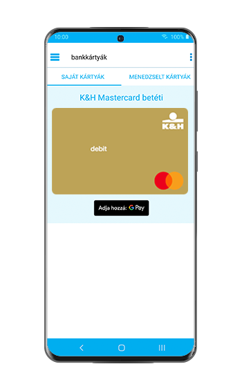 Lépjen be a K&H mobilbankba, kattintson a bankkártyák menüpontra, majd a kártya alatt található „Adja hozzá: Google Pay” gombra, és kész is!