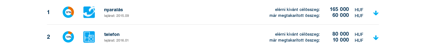 bármikor létrehozhatóak, módosíthatóak vagy törölhetőek a megtakarítási célok a K&H e-bankban, illetve módosítható a célok fontossági sorrendje is, így naprakészen látható megtakarítások alakulása. Például: