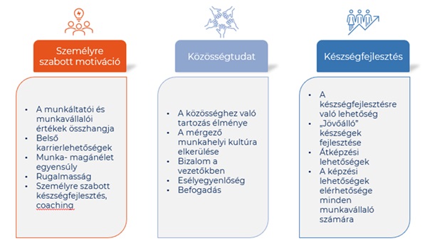 - a közösséghez tartozás élménye (az előző évhez képest 37%-ról 55%-ra növekedett azoknak a válaszadóknak az aránya, akik úgy érzik, hogy a fejlődésükhöz nagyban hozzájárul az, hogy milyen a munkahelyi közösség, ahova tartoznak)