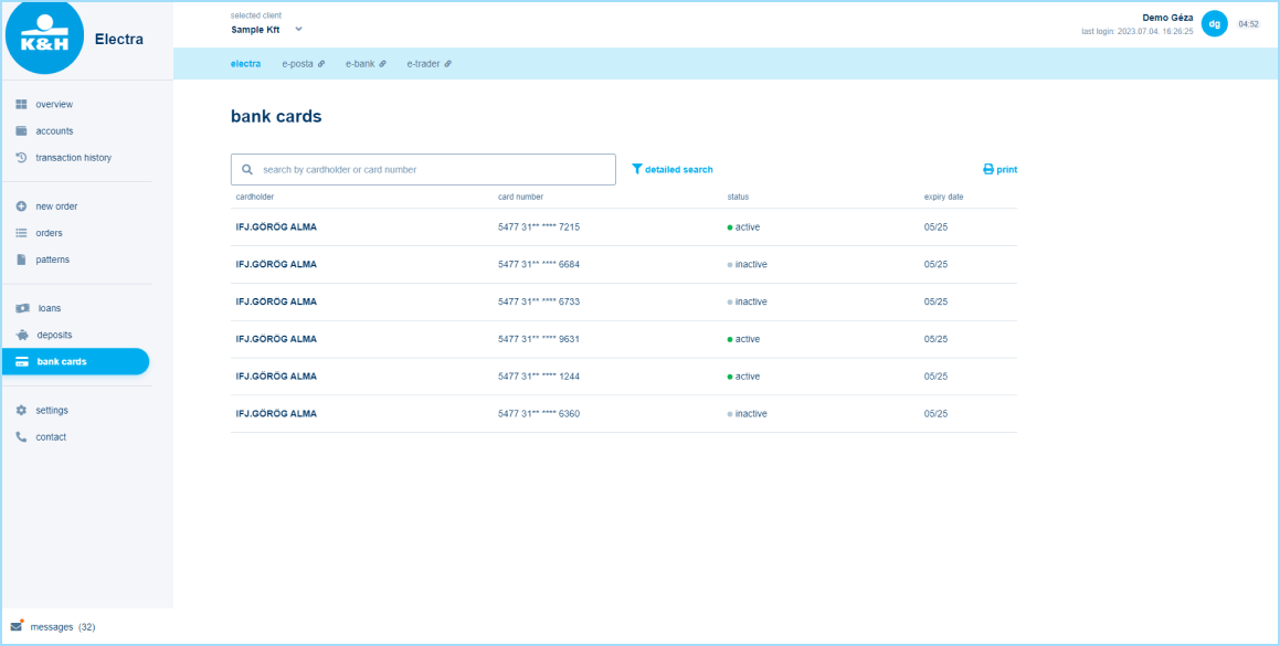 information for cardholders using K&H Bank's ATM network