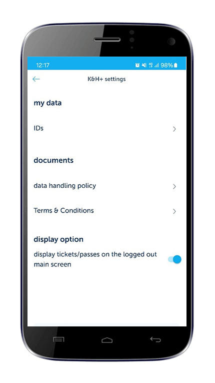 Turn on mobile internet access on your phone. Open the K&H+ menu option in the K&H mobilbank application. Select the mobile ticket you want to use.