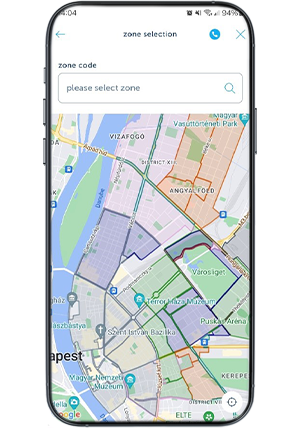In your device settings, you can allow the mobile banking app to access your location data. If precise location is enabled, the zone where you are will be automatically selected when you start parking using the service. There may be occasions when the GPS location is incorrect, especially when you are on the border between two parking zones. In such cases, it is recommended that you check the map to make sure the correct zone has been selected. It is always your responsibility to enter the correct zone; K&H Bank cannot check this.
